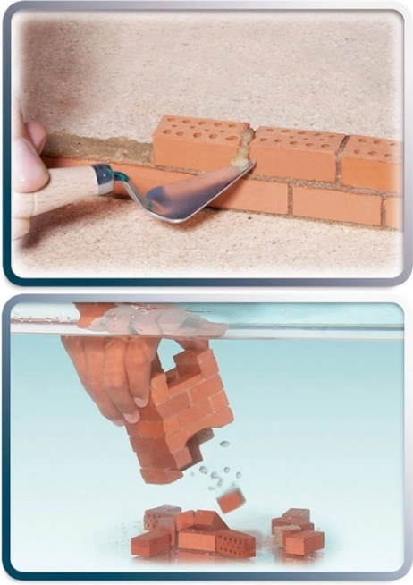 Ce jeu de construction unique vous permet de construire une maison ou un château comme un vrai bâtisseur. Il suffit de mélanger le mortier, d'assembler les briques et de commencer à construire. Une fois terminé, vous pouvez mouiller à nouveau la création, la sécher et commencer à construire à nouveau.