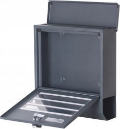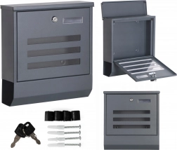 Élégante boîte aux lettres ModernHome en acier galvanisé de teinte anthracite, résistante à la corrosion et aux intempéries. Elle offre un tube à journaux, des fenêtres de contrôle, une construction étanche et un montage facile sur façade ou clôture. Sont inclus dans l'emballage des chevilles de montage et 2 clés.