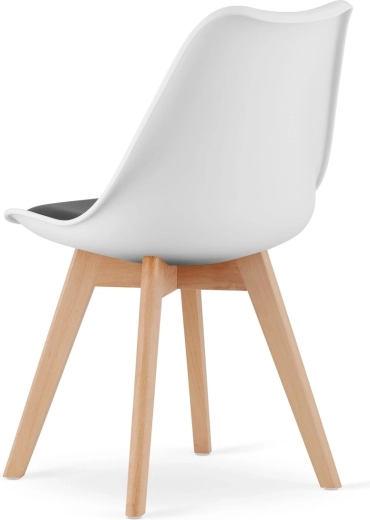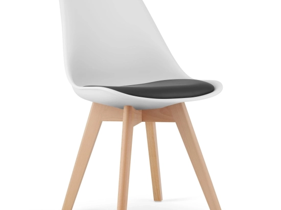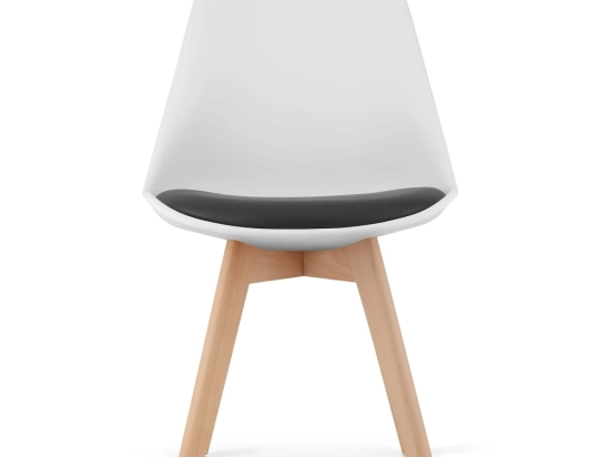 - Les chaises sont disponibles en noir et blanc avec des pieds en bois de teinte naturelle.