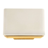 Grille dorée élégante, format compact et fabrication soignée en MDF. Le panneau de contrôle frontal assure un accès rapide aux fonctions et les pieds caoutchoutés garantissent une bonne stabilité sur les meubles.
