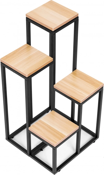 Support pour plantes moderne de la marque ModernHome, un excellent complément à votre intérieur. Il dispose de quatre étagères à différentes hauteurs, permettant d’organiser des plantes de tailles variées. L’ensemble du support est fabriqué en métal et MDF dans une teinte chêne clair, garantissant sa stabilité et un entretien facile.