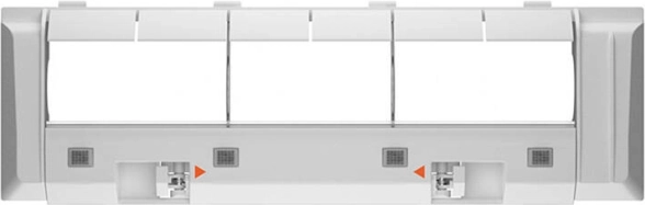 Les trois bras de la brosse latérale atteignent les coins et longent les plinthes, où ils rassemblent la poussière et les miettes pour les diriger vers la zone d’aspiration du robot.