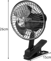 Le ventilateur est équipé d'un clip puissant, qui assure une fixation facile sur différentes surfaces, ce qui le rend idéal pour une utilisation dans les véhicules.