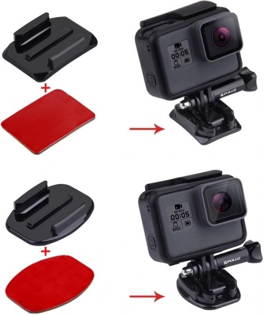 Retrouvez la liberté de cadrage sans perçage ni outils. Le set Puluz combine des pastilles adhésives 3M avec des bases plates et incurvées, afin de fixer la caméra sur un casque, un capot de voiture, une planche de surf ou d’autres équipements. La construction en ABS offre une longue durabilité et une stabilité élevée même en cas de fortes vibrations.