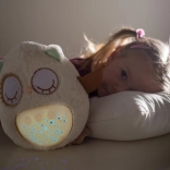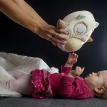 Les boutons situés sur le ventre assurent une utilisation facile, même dans l’obscurité. Grâce à son format compact, le petit hibou est idéal pour le lit comme pour les voyages. Sa matière douce et agréable invite aux câlins et aide à instaurer un rituel du soir apaisant.