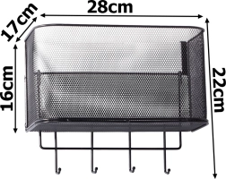 Ce panier suspendu en métal est non seulement pratique, mais aussi stylé. Il est spacieux et permet de ranger divers objets, des accessoires de cuisine aux articles de toilette. 4 crochets supplémentaires peuvent être utilisés pour suspendre des clés, des serviettes ou des sacs à main.