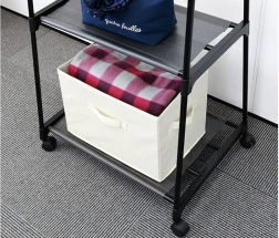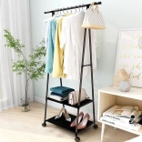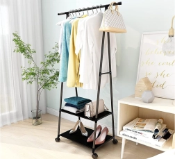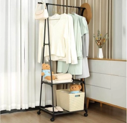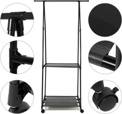 Nous vous présentons un portant pour vêtements polyvalent qui facilite l'organisation de vos vêtements, chaussures et accessoires. Il est équipé d'étagères robustes pour les objets lourds et d'une barre supérieure pour suspendre manteaux, robes ou chemises.