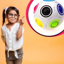 La boule casse-tête Rainbow Ball est un jouet astucieux et addictif, basé sur le principe des puzzles coulissants. Votre mission est de déplacer les billes entre les ouvertures et de les ranger selon la couleur des anneaux. Une ouverture sans anneau coloré reste vide et sert d’emplacement temporaire pour le déplacement.