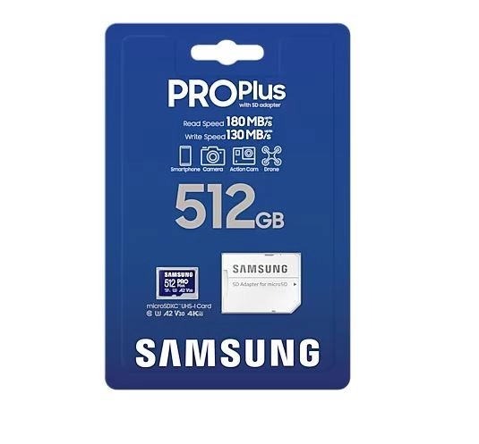 La carte mémoire Samsung Pro Plus microSDXC 512Go offre un outil performant pour le stockage et le transfert de données avec des vitesses de lecture jusqu’à 180 Mo/s et d’écriture de 130 Mo/s. Elle est idéale pour travailler avec de grands fichiers multimédias et l’enregistrement de vidéos en 4K.