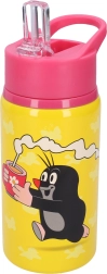 Bouteille pour enfants élégante avec motif de la Taupe, en acier inoxydable résistant, d’une capacité de 500 ml. Elle tient bien en main, est légère, possède un capuchon rose et est idéale pour les voyages, la maternelle et le terrain de jeu.