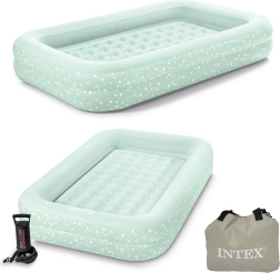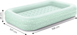 Le matelas gonflable Intex de dimensions 168x107x25 cm est parfait pour les enfants en voyage - dans les hôtels, campings, etc. Il est fabriqué à partir de PVC durable et recouvert de velours doux et imperméable d'une agréable couleur verte qui s'intègre parfaitement dans toutes les chambres. La valve Boston permet un dégonflage facile en seulement une minute, après quoi le matelas peut être plié et stocké.