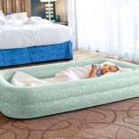 Ce matelas gonflable est conçu pour les enfants et possède des bords légèrement relevés pour éviter qu'ils ne tombent du matelas. Il est idéal pour une utilisation intérieure comme lit d'enfant.