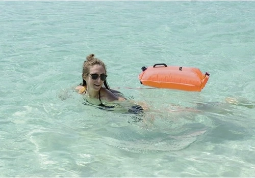 Pratique combinaison de bouée de natation et de poche étanche, permettant le stockage des essentiels lors des activités aquatiques.