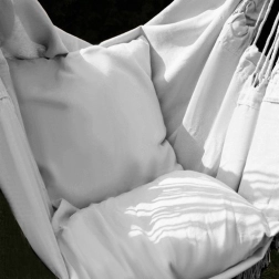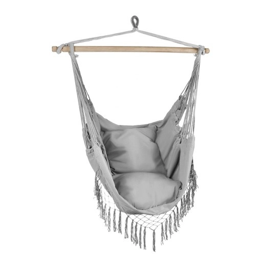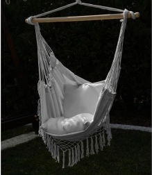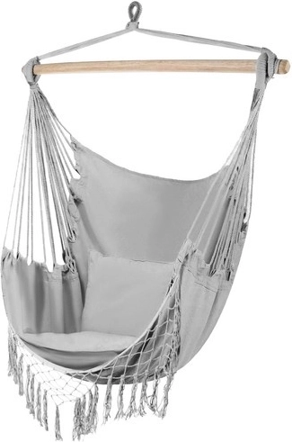 Ce fauteuil suspendu confortable de style hamac est conçu pour la détente quotidienne, de la courte sieste à la lecture de votre livre préféré. Le coton naturel mélangé à du polyester est agréable au toucher, bien ventilé et conserve en même temps une haute résistance à l’usure.