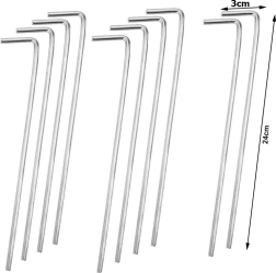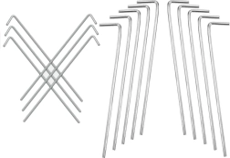 Pratique, le lot de 10 piquets en acier avec terminaison en L est idéal pour le camping, le jardin et la randonnée. Grâce à leur diamètre de 4 mm et leur longueur de 24 cm, les piquets tiennent fermement dans l’herbe, la terre et le gravier, empêchant le relâchement des cordes ou des sangles. Leur forme simple permet un enfoncement et un retrait rapides.