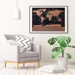Carte décorative qui permet aux voyageurs de marquer les pays visités en retirant la couche supérieure. Dessous apparaissent les drapeaux colorés et les détails de chaque pays.