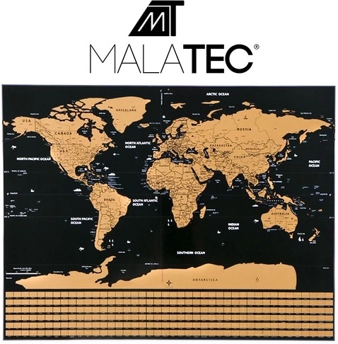 La carte à gratter permet de marquer les pays visités et de révéler les détails géographiques cachés et les drapeaux sous la couche.