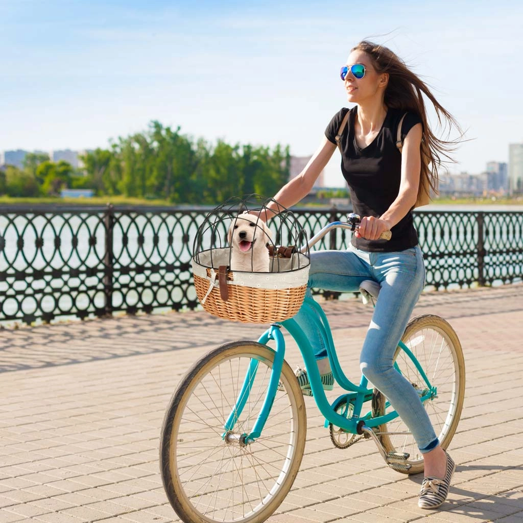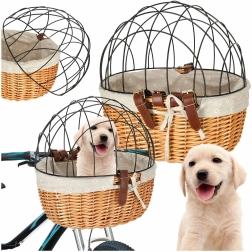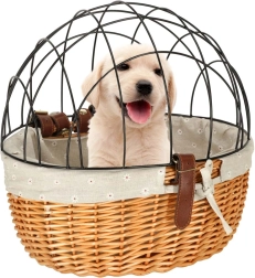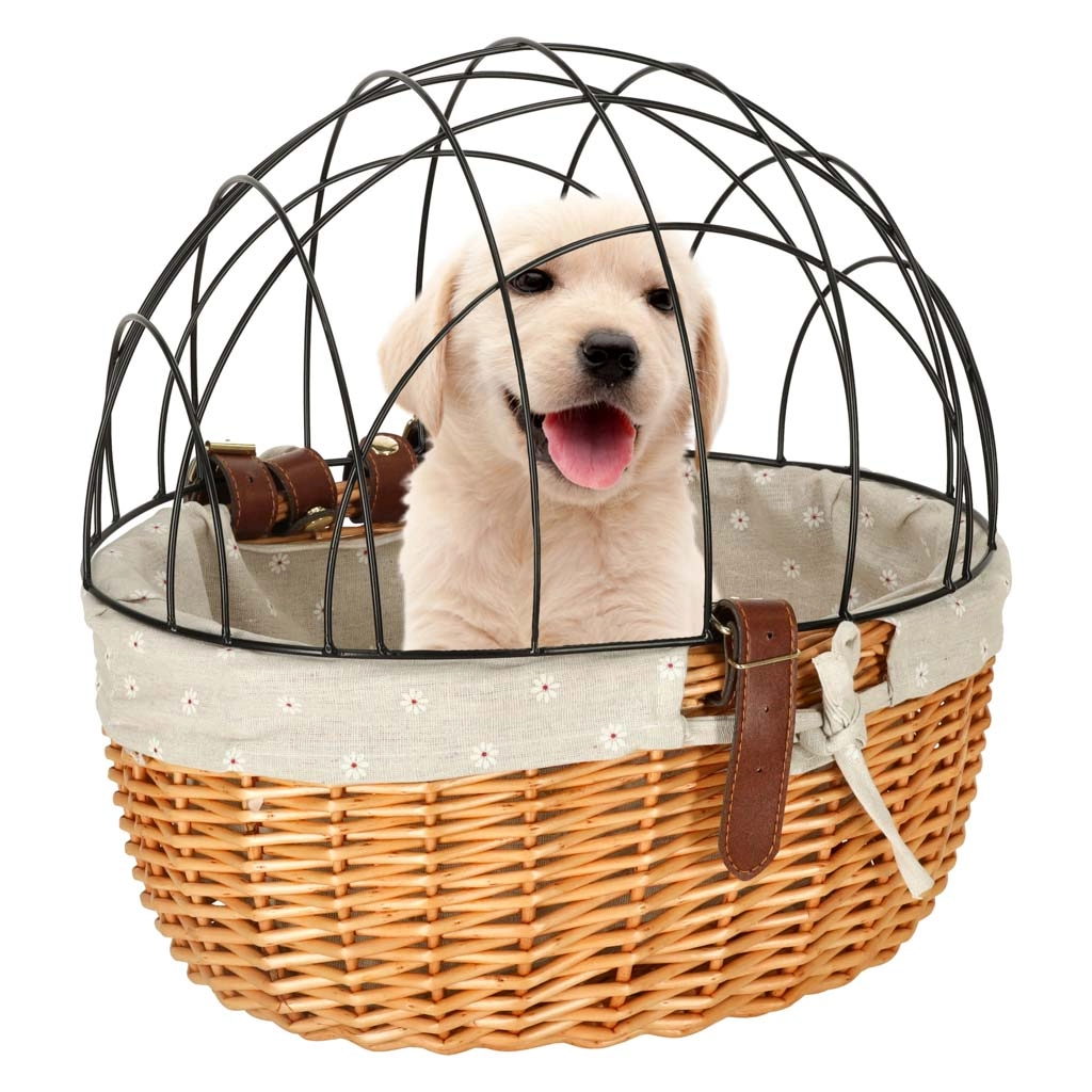 Panier de vélo en osier avec grille pour votre chien ou votre chat :- Sécurité de votre animal : La grille métallique assure un trajet sûr pour votre compagnon avec une vue imprenable.