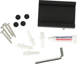 Choisissez le vissage au mur ou un collage solide avec la colle MS. Sont inclus: support, vis, chevilles, clé et colle pour une installation rapide.