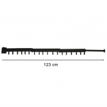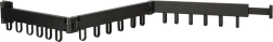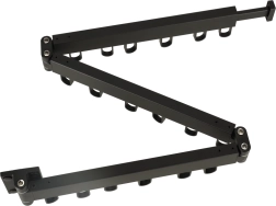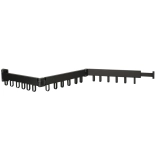 La barre d’angle avec crochets fixes et articulation permet un rangement pratique le long du mur et un déploiement uniquement lorsque nécessaire.