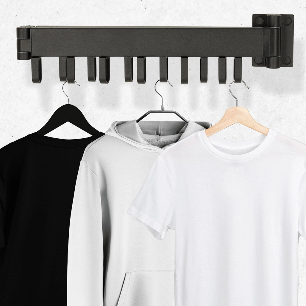 L’installation est simple et sûre – un kit de montage de base est inclus. Avec 12 crochets pratiques, vous disposez d’un espace clair pour sécher et suspendre chemises, pulls, manteaux et sacs. Idéal pour les petits espaces, entrées, salles de bain, buanderies ou dressings.