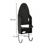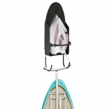 Deux crochets robustes supportent la plupart des planches à repasser, tandis que la partie supérieure accueille en toute sécurité le fer et ses accessoires.