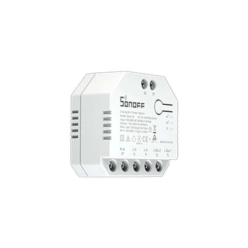 Transformez des circuits classiques en circuits intelligents. SONOFF Dual R3 apporte à votre maison le contrôle à distance, l’automatisation et une mesure précise de la consommation sur deux canaux. Pilotez depuis n’importe où avec l’application eWeLink pour Android et iOS, configurez des scénarios, minuteries et programmes pour éclairages, appareils, volets et auvents.