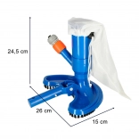 L’installation se fait en un clin d’œil : raccordez le raccord rapide au tuyau d’arrosage, fixez l’aspirateur sur une perche standard de 30 mm et immergez-le. Les saletés capturées finissent dans le sac en maille, que vous videz puis réutilisez après le nettoyage. Idéal pour les piscines, spas et étangs de jardin.