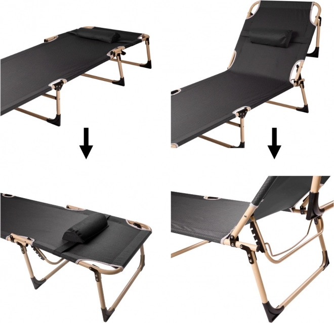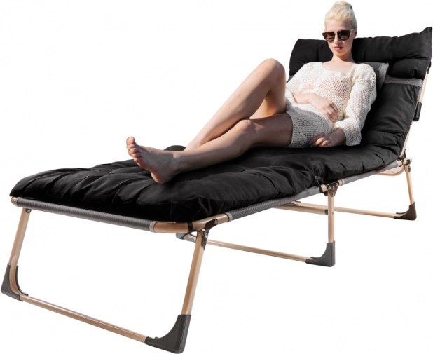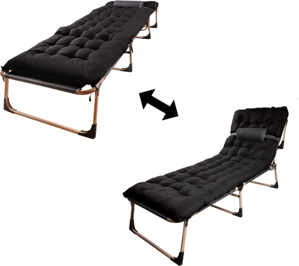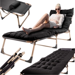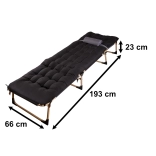 Lit de camp pliant confortable et résistant pour le camping, la terrasse et le jardin. Il dispose d’un cadre en acier avec revêtement par poudre, d’un dossier réglable à 4 positions et d’un tissu Oxford 1200D robuste. Inclus: matelas moelleux et petit coussin pour un confort maximal. Se plie et se transporte facilement – idéal pour la voiture ou le camping-car.
