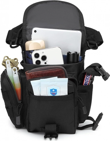 Une organisation astucieuse des poches, incluant une poche pour lampe ou stylo et un porte-mousqueton, maintient le téléphone, le portefeuille, les clés ou le petit outillage à leur place. Le textile résistant avec finition déperlante et les surpiqûres robustes se révèlent efficaces aussi bien sur le terrain qu'en ville. Grâce à la fixation à la taille et à la cuisse, vous avez les mains libres et votre équipement toujours à portée.