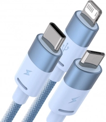 Un seul câble pour tout: BASEUS StarSpeed combine les connecteurs USB‑C, micro USB et Lightning, prend en charge la charge rapide 3,5 A (5 V) et le transfert de données 480 Mb/s. Sa gaine en nylon résistante, sa longueur de 1,2 m et la protection intelligente BPS en font un accessoire fiable à la maison, au bureau et en déplacement.