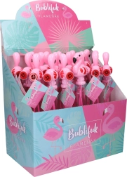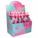 Profitez de l'amusement avec l'original flamant rose 2-en-1 bulles qui non seulement crée des bulles incroyables, mais aussi émet des sons grâce au sifflet.