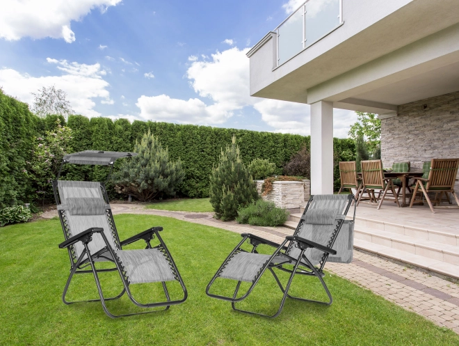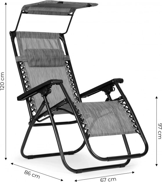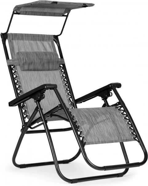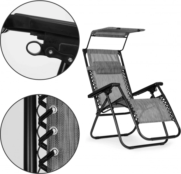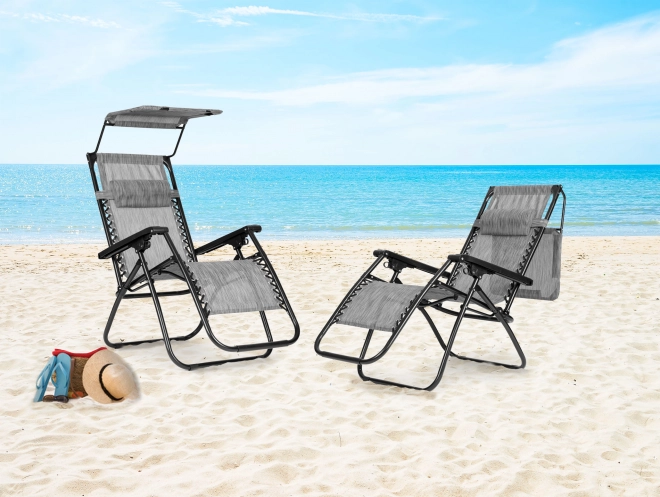 Chaise de jardin/plage pliable et réglable avec pare-soleil gris