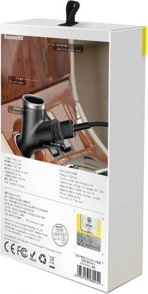 Le chargeur de voiture universel Baseus de type Y combine une entrée passante vers la prise allume-cigare avec 2× USB (3,4 A) pour une charge rapide. Le module puissant de 40 W alimente même les appareils plus exigeants et une protection avancée prévient les courts-circuits, la surchauffe et la surcharge.
