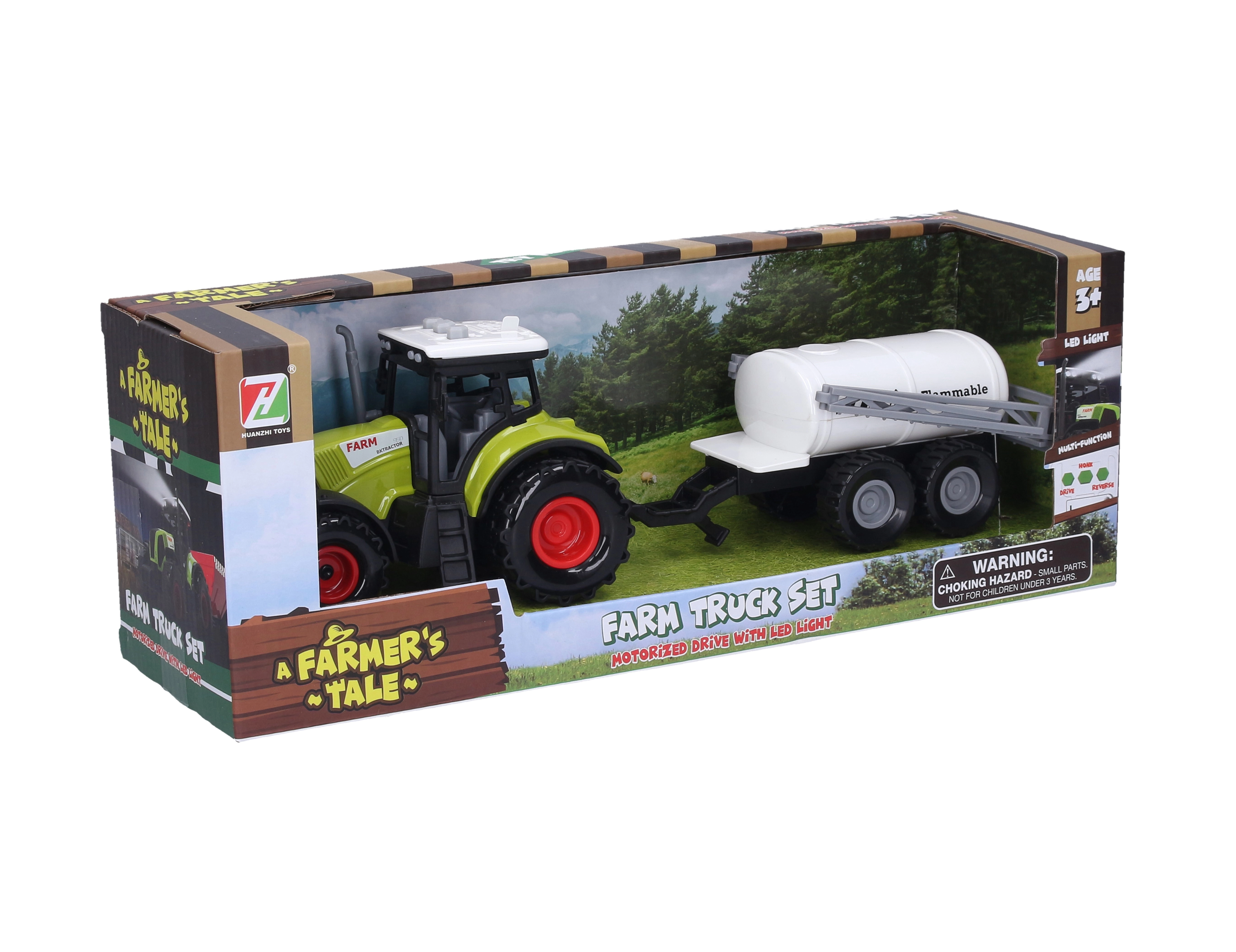 Découvrez une superbe machine agricole pour les petits amateurs de ferme. Le tracteur avec remorque pulvérisatrice aidera à « traiter » les champs et à les préparer pour la saison. Grâce à ses effets lumineux et sonores, il paraît réaliste et stimule l’imagination pendant le jeu.