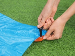 L'installation elle-même est simple. Il suffit de déplier le toboggan sur l'herbe, de raccorder le tuyau et de profiter de longues heures de plaisir aquatique en plein air.