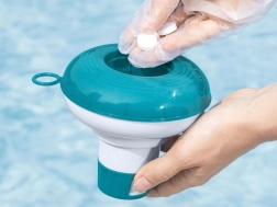 Le doseur de chlore flottant Bestway assure un apport continu de produits pour piscine et le maintien d'une eau cristalline pendant toute la saison. Il suffit d'insérer des tablettes de chlore d'un diamètre allant jusqu'à 2,5 cm (non incluses) et le doseur les dissout de manière sûre et uniforme sur toute la surface.