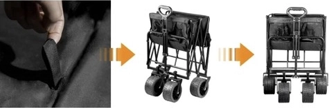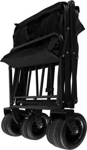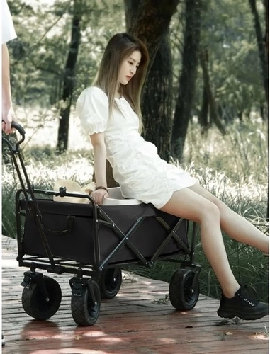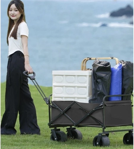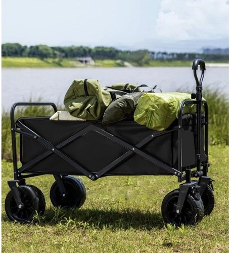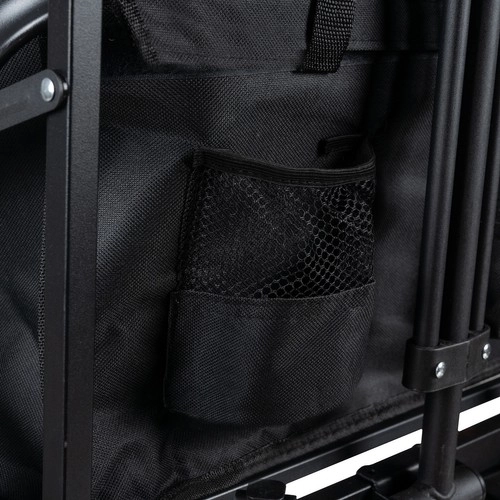 Le fond renforcé et le tissu Oxford 600D déperlant supportent un usage intensif. Deux poches frontales accueillent boissons et petits objets; une fois plié, le chariot se transporte facilement.