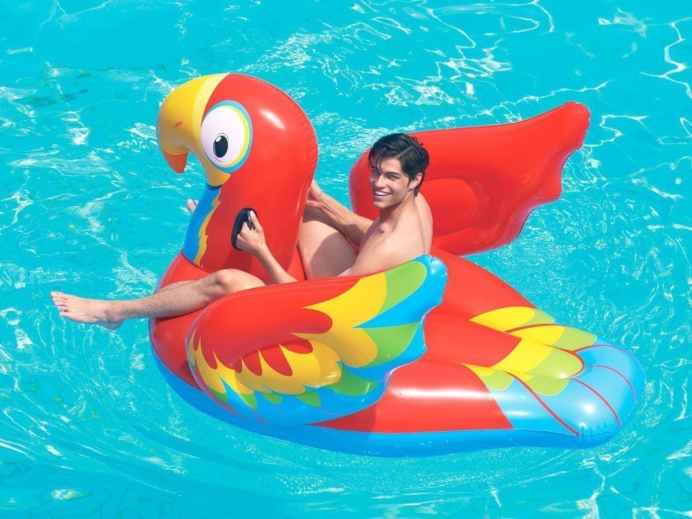 Profite des plaisirs de l’eau avec ce perroquet gonflable ou offre‑toi un moment de détente en te laissant porter par les vagues !