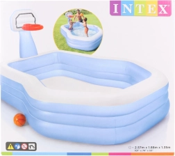 Le centre de jeu avec panier de basket intégré et ballon offre une excellente combinaison de jeux aquatiques et d’activité physique. Ses dimensions généreuses de 257 × 188 × 130 cm et son volume de 682 l (à une hauteur d’eau de 32 cm) garantissent suffisamment d’espace pour les enfants à partir de 3 ans.