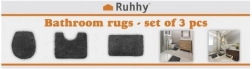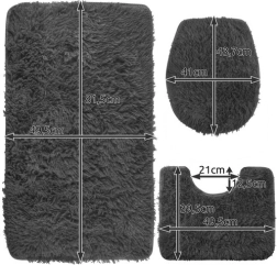 L'ensemble comprend un tapis rectangulaire classique, un tapis avec découpe pour toilette, et une housse de siège de toilette qui complètent l'apparence de votre salle de bain.