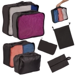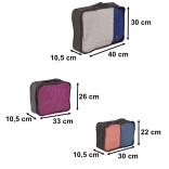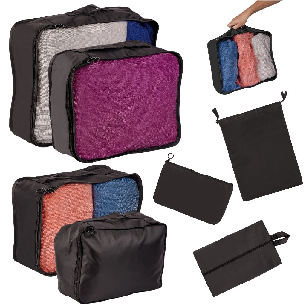L’ensemble d’organisateurs de voyage vous aide à séparer vêtements et accessoires pour que tout reste ordonné et à sa place. Les quatre cubes de tailles différentes sont idéaux pour les t-shirts, sous-vêtements et pulls, tandis que le sac pour chaussures séparé et la pochette pratique pour les petits objets gardent le reste de vos affaires propre et rangé en sécurité.