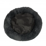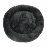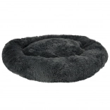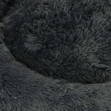 Ce panier en forme de donut, moelleux et gris foncé, procure aux chiens comme aux chats une chaleur accueillante. Sa surface pelucheuse et douce est agréable au toucher et le rembourrage confortable réduit la pression en position allongée. Le rebord surélevé soutient la tête et le cou et crée un sentiment de sécurité, idéal pour les animaux qui aiment se lover en boule.