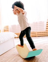 La planche d’équilibre universelle LULILO AJLO avec feutre antidérapant, dans une élégante couleur turquoise, favorise le développement de l’équilibre, des capacités de coordination et de la motricité globale. Contreplaqué de hêtre robuste, bords lisses et dessous en feutre pour un balancement en toute sécurité sans glisser sur le sol. Idéale pour les enfants dès 3 ans et les adultes – pour l’exercice, le jeu et la détente.