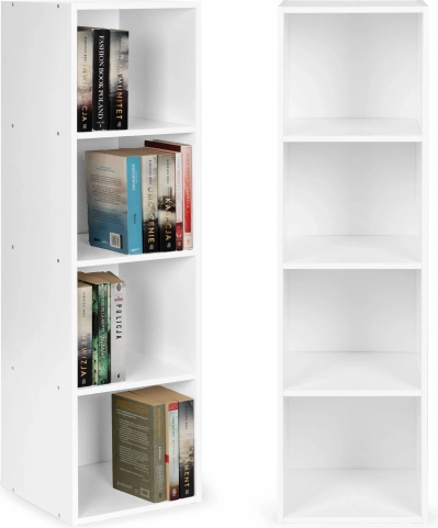 Les quatre étagères intégrées permettent une utilisation optimale de l’espace. Chaque niveau offre de la place pour ranger divers objets – des livres et décorations jusqu’aux petits accessoires.