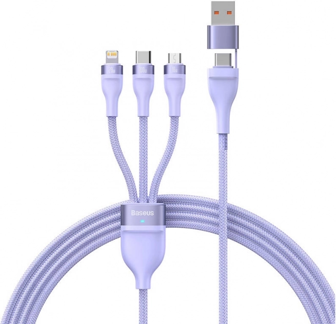 Expérimentez le confort avec le câble de charge 3-en-1 de Baseus, qui contient des connecteurs Lightning, USB-C et Micro USB pour la charge simultanée de trois appareils. Utilisation flexible grâce aux ports d'entrée doubles USB et USB-C.