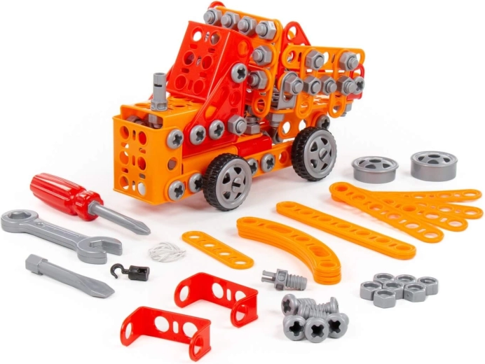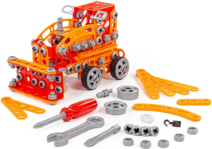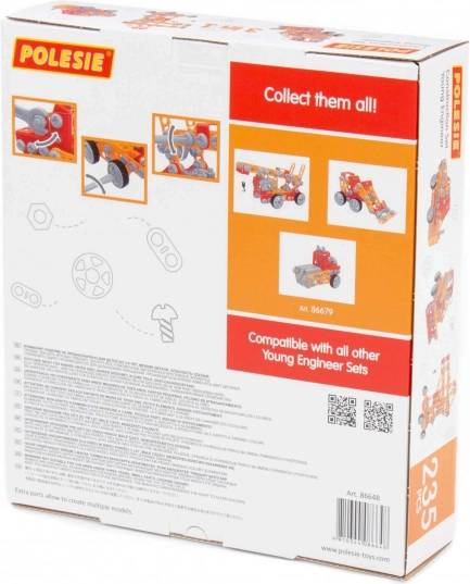 Le jeu de construction Petit ingénieur 235 pièces du fabricant Polesie a été créé spécialement pour les jeunes ingénieurs. Les pièces sont fabriquées sous forme de bandes solides avec des trous. Les bandes se relient entre elles à l'aide de vis et d'écrous. Le set comprend un guide détaillé grâce auquel vous pouvez réaliser les modèles présentés sur l'emballage du jouet. Le jeu avec cet ensemble ne se limite pas au montage selon les instructions. Les petits ingénieurs peuvent laisser libre cours à leur imagination et créer quelque chose de nouveau, révélant ainsi leur potentiel créatif. Les différents types de jeux de construction diffèrent par leur thème mais sont entièrement compatibles. Les enfants peuvent ainsi constituer toute une collection de modèles !