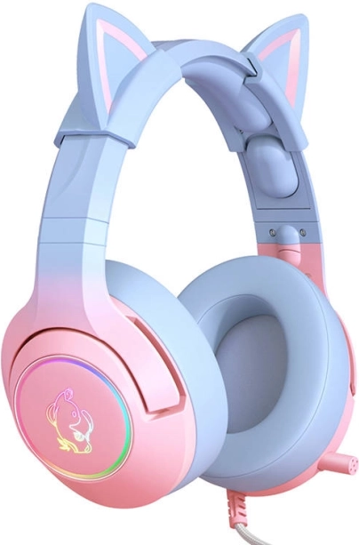 Casque de jeu rose-bleu avec oreilles de chat