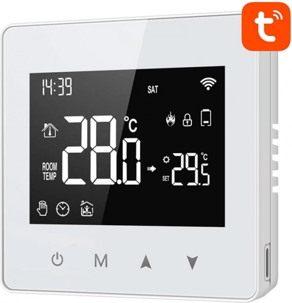 Le thermostat est compatible avec l’application Smart Life/TUYA et prend en charge le contrôle vocal via Amazon Alexa et Google Home. Il offre une fonction antigel, un verrouillage enfant et une mesure précise à l’aide d’un capteur NTC avec une exactitude de ±1 °C. L’étalonnage et le réglage de l’hystérésis vous aident à affiner la température selon vos besoins.
