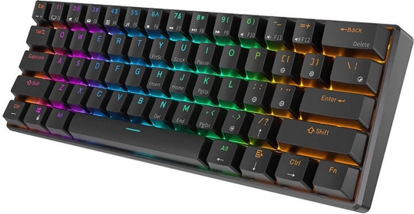 Ce clavier est équipé d'un éclairage RGB avec 14 modes, permettant de créer vos propres effets lumineux. Le design compact économise de l'espace sur le bureau et la batterie robuste de 1450 mAh assure une longue durée d'utilisation allant jusqu'à 120 heures sur une seule charge.